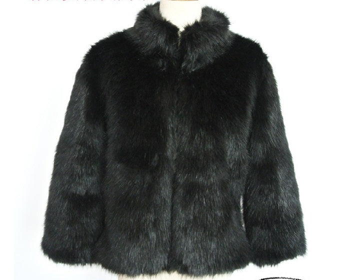 Faux Fur Jacket Fox Fur Warm Winter Stand Collar Slim Jacket