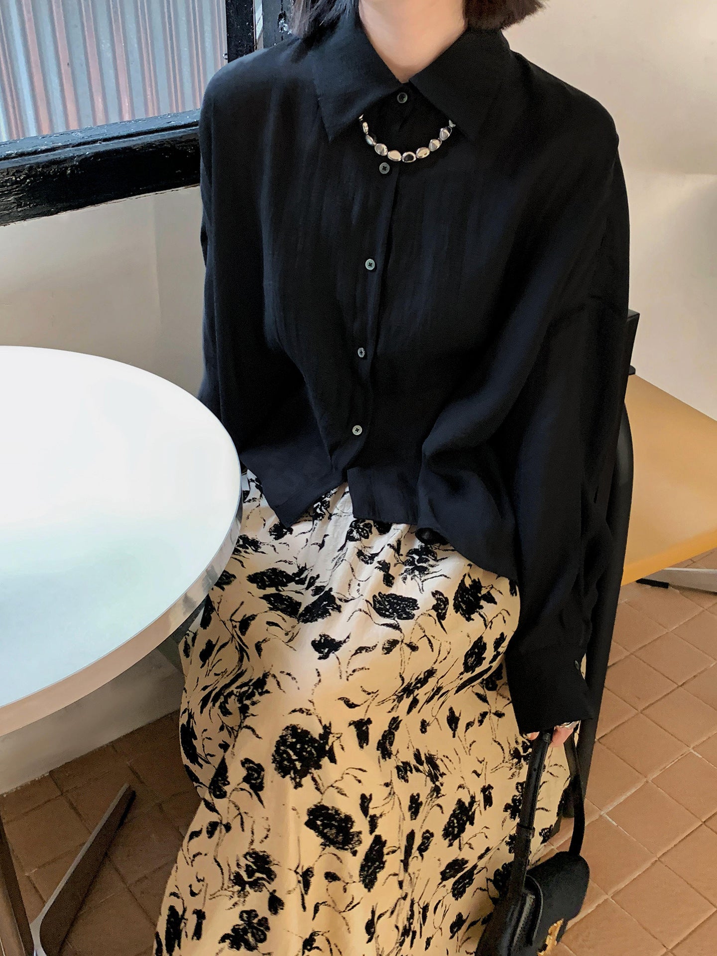 Retro High Waist Flocked Long A-Line Skirt