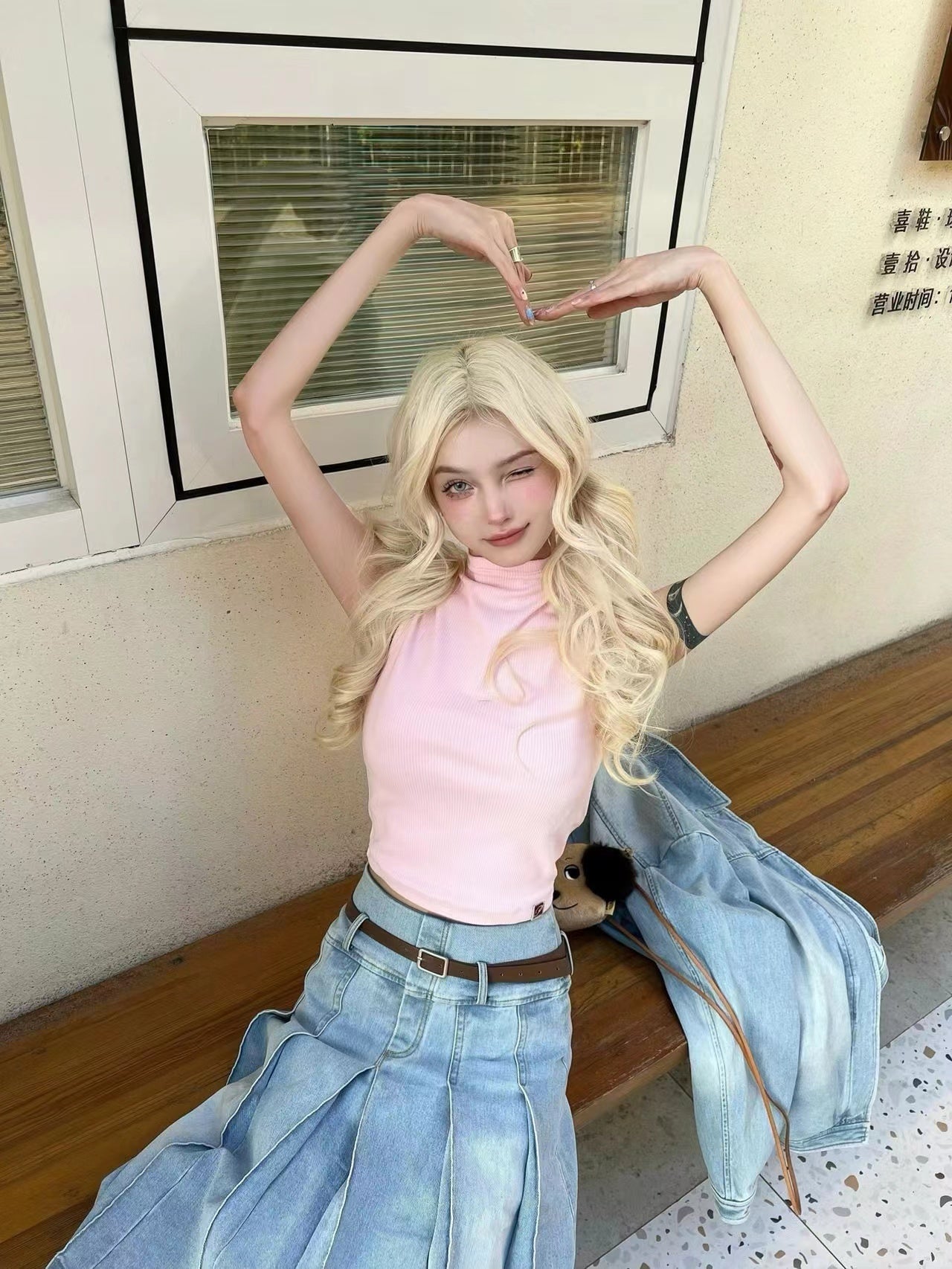 Retro Washed Light Blue Denim Pleated Skirt
