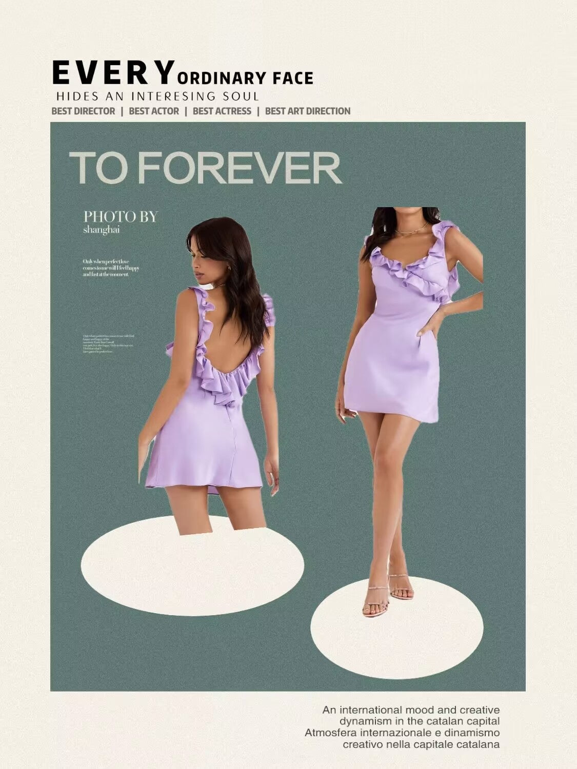 Women's Slim-fit Satin Acetate Stitching Ruffle Ruffle Dress