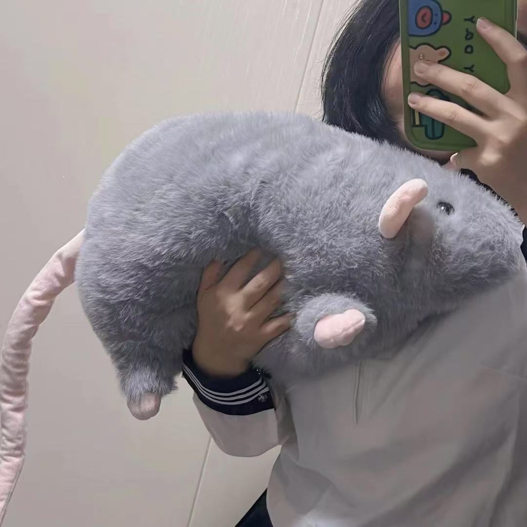 Large Mouse Plush Doll Blue Gray Flower Branch Mouse Doll